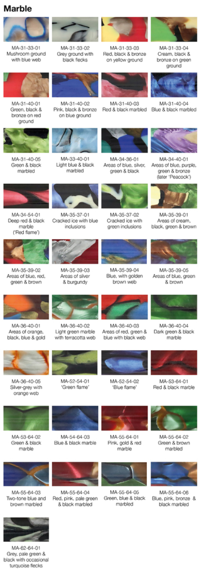 Note that MA-52-54-02, the blue flame material, now seems to be much earlier than the implied 1952 date, probably c1933. See the Updates section for more information.